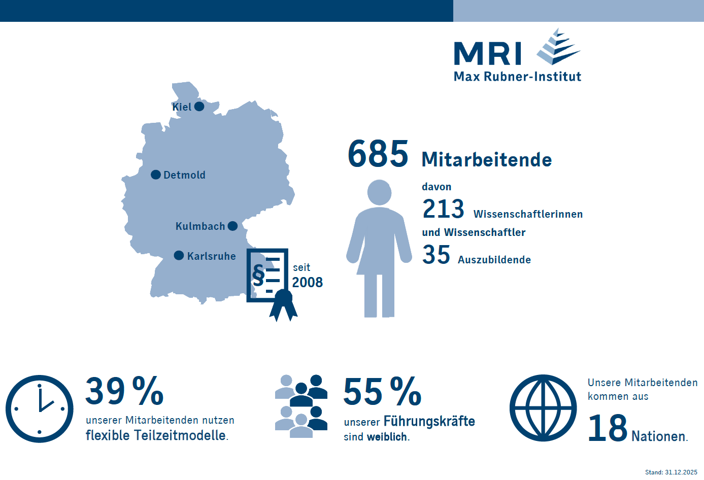 Das Max Rubner-Institut (MRI) ist die Forschungs- und Beratungseinrichtung des Bundes im Bereich Ernährung und Lebensmittel. Etwa 700 Mitarbeiterinnen und Mitarbeiter arbeiten an den vier Standorten in Deutschland, darunter mehr als 200 Wissenschaftlerinnen und Wissenschaftler, die in neun Fachinstituten sowie im Nationalen Referenzzentrum für authentische Lebensmittel (NRZ-Authent) intern und extern vernetzt für die Politikberatung und zum Nutzen des Gemeinwohls forschen. Bewerben Sie sich und werden Sie Teil dieses wissenschaftlichen Netzwerkes: https://www.mri.bund.de